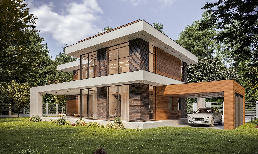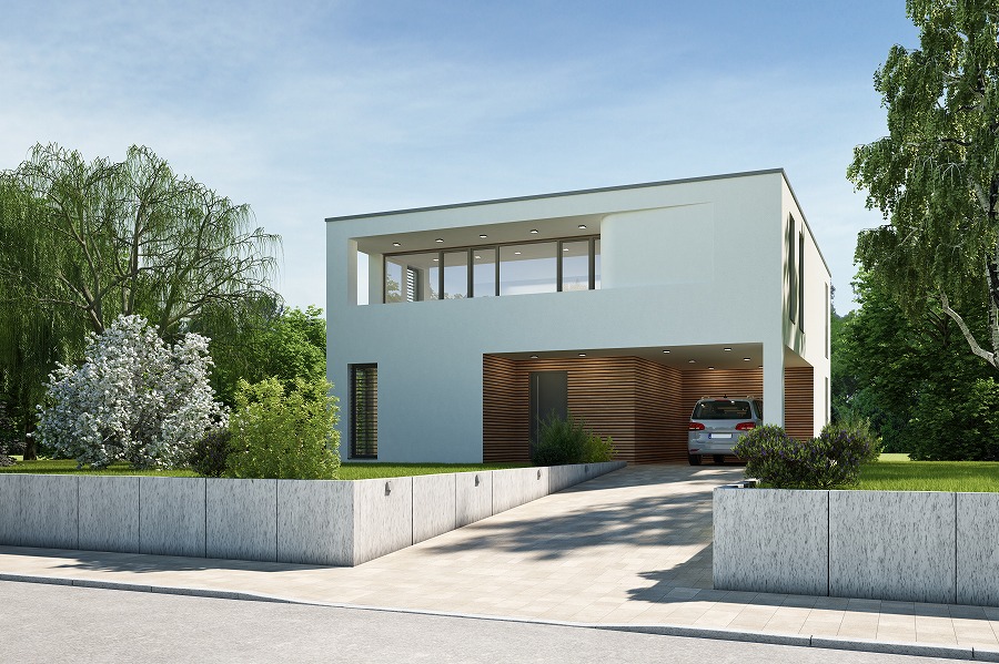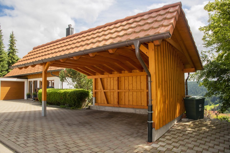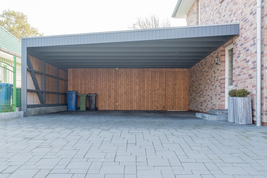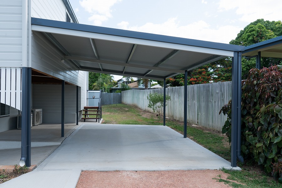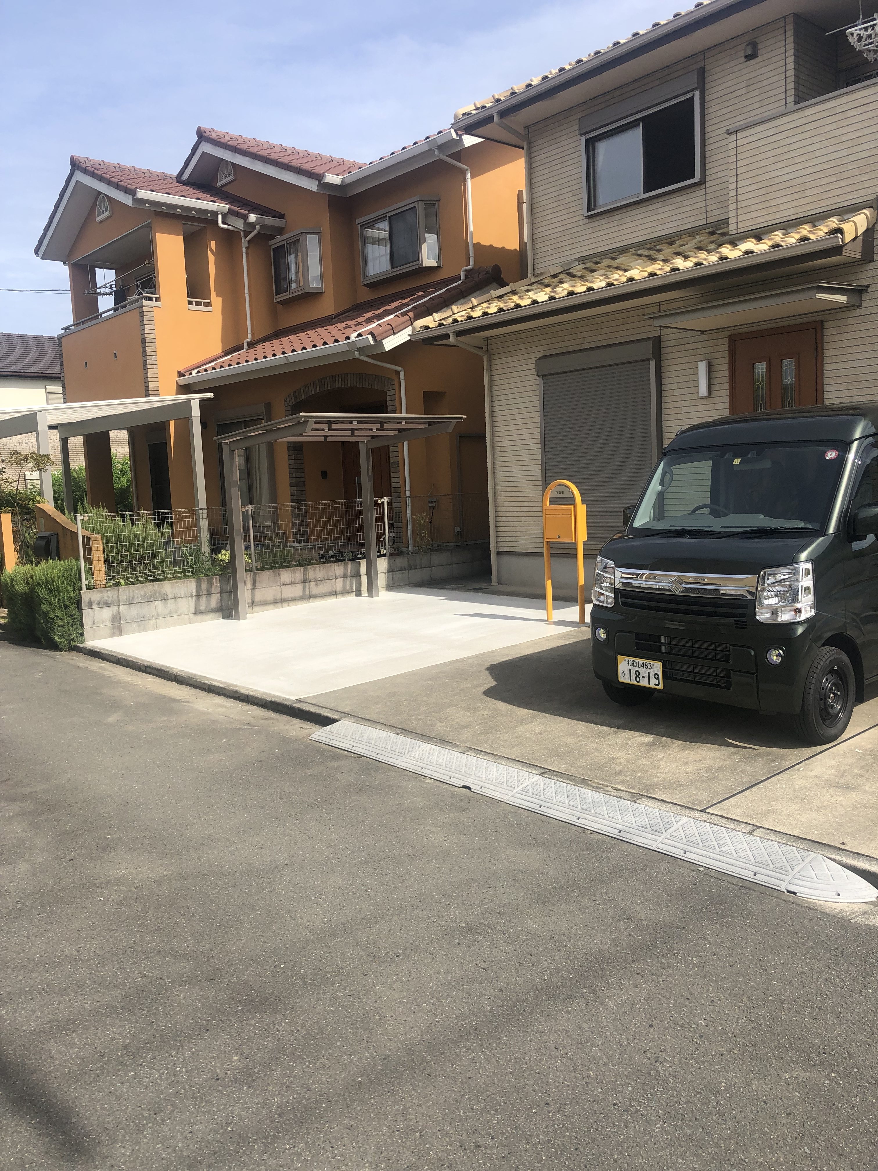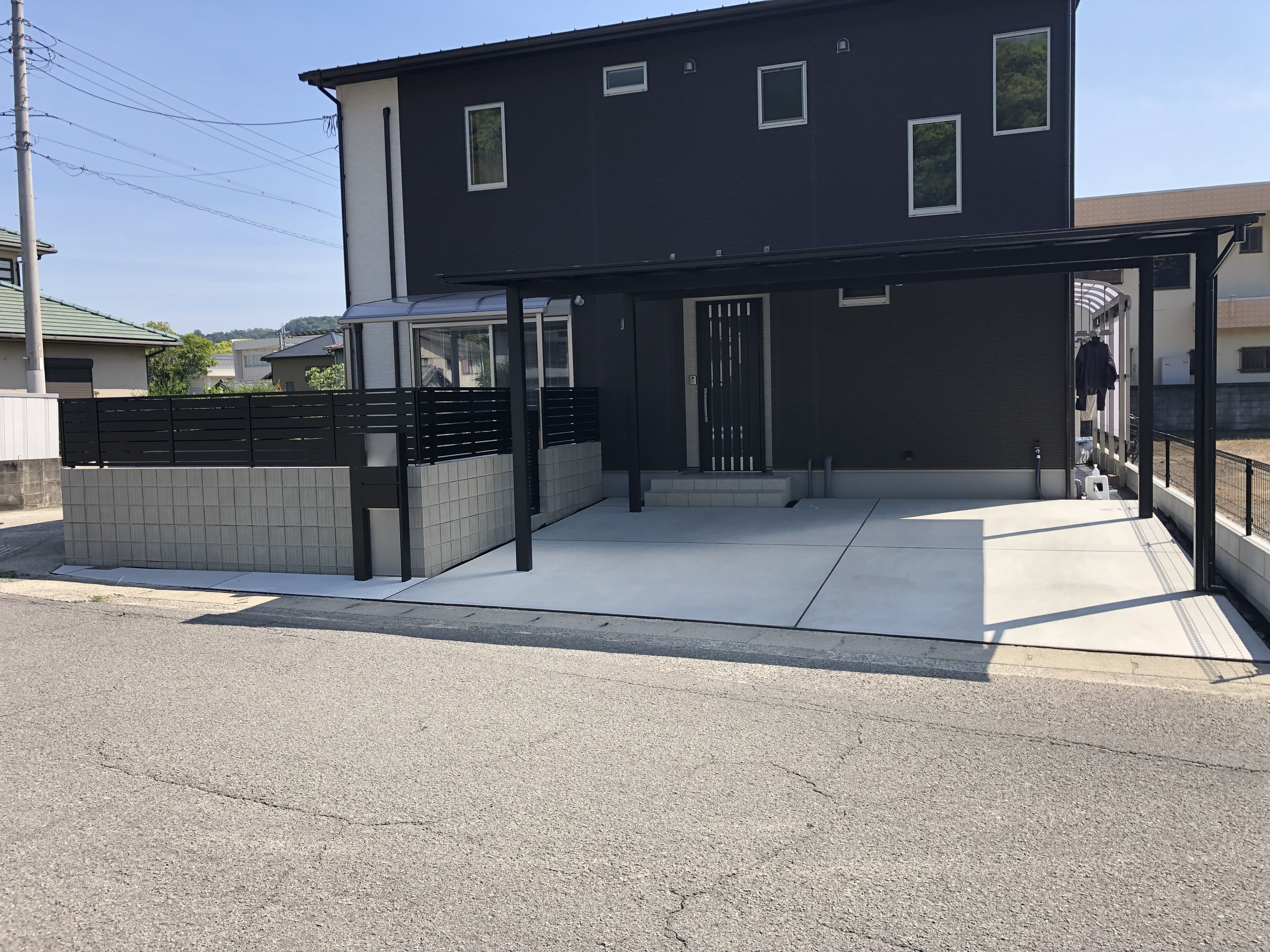 ブロック塀 コンクリート舗装 人工芝 テラス屋根 カーポート